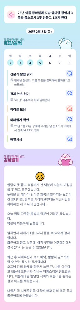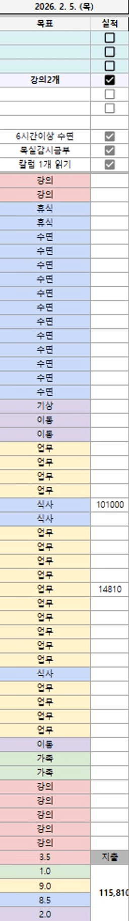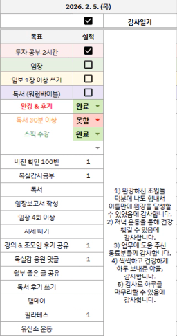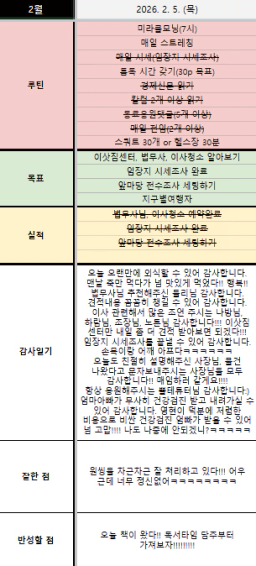 [별찌롱] 2/5 실적, 감사일기, 시간가계부 2/6 목표
