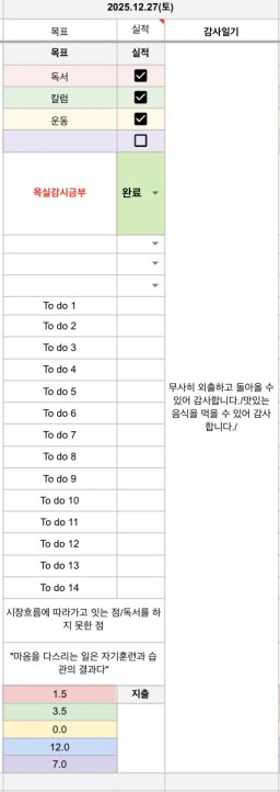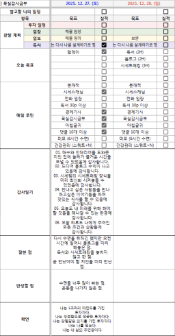 25. 12. 28. 목표, 실행, 감사