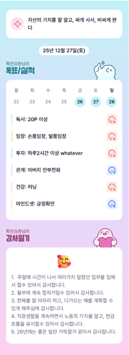 12/26~27(금~토) 목표실적감사일기