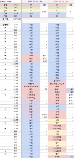 12/27 목표, 실적, 감사일기 [주시부]
