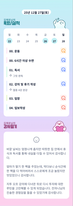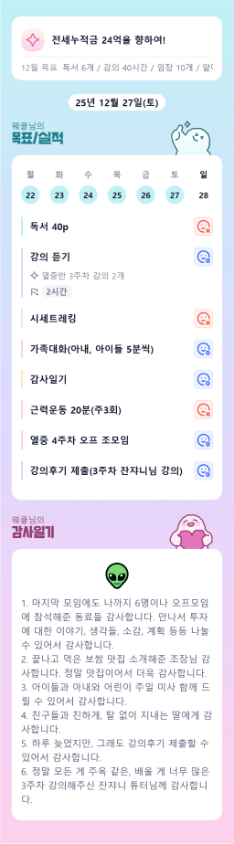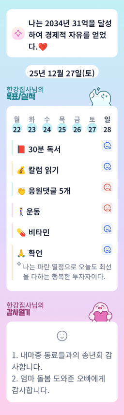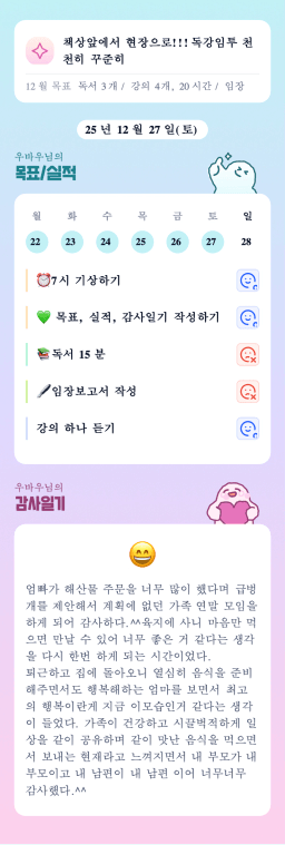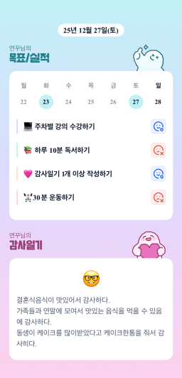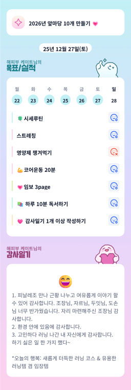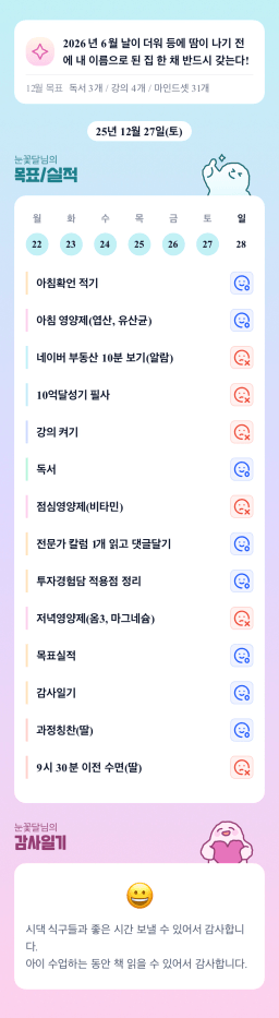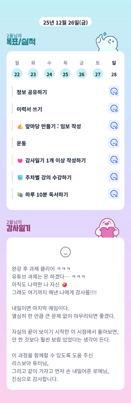 [러버블리v] 25.12.28 목표, 12.27 감사일기 + 칭반