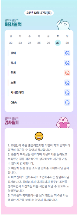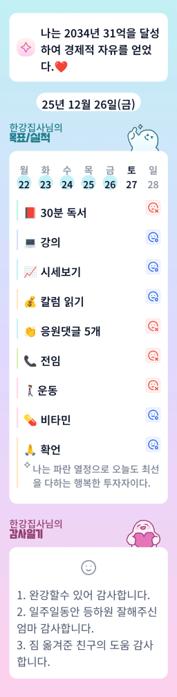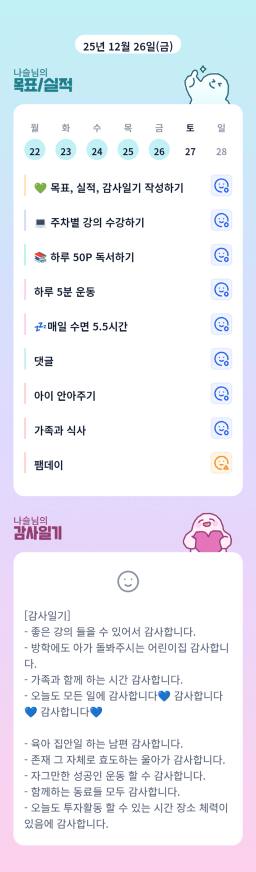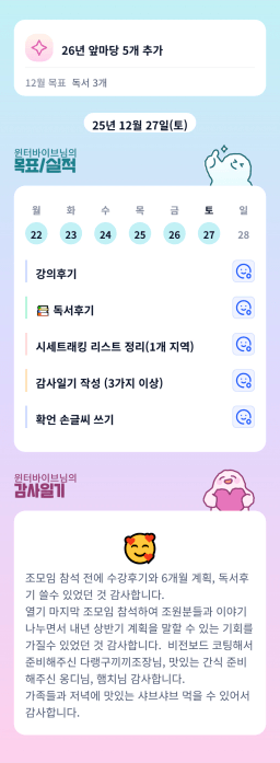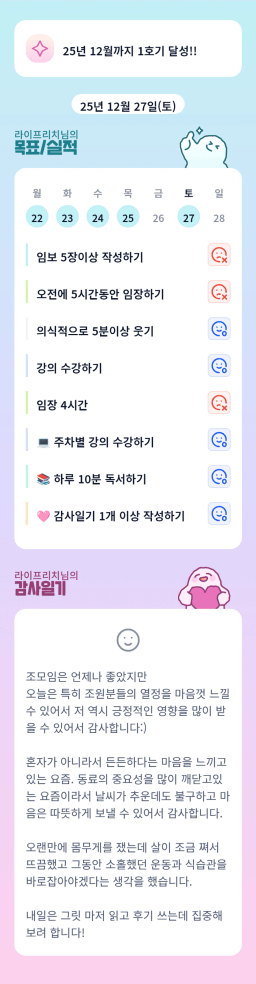 [정의] 2025년 12월 27일 목표, 실적, 감사일기