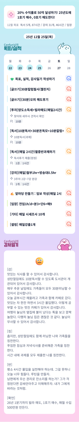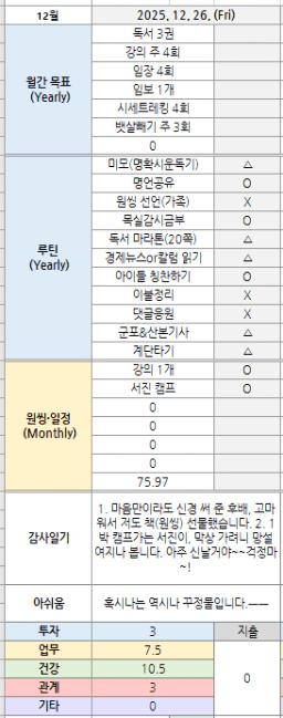 [나무해 월벗] #1336. 25.12.26 목표/실적