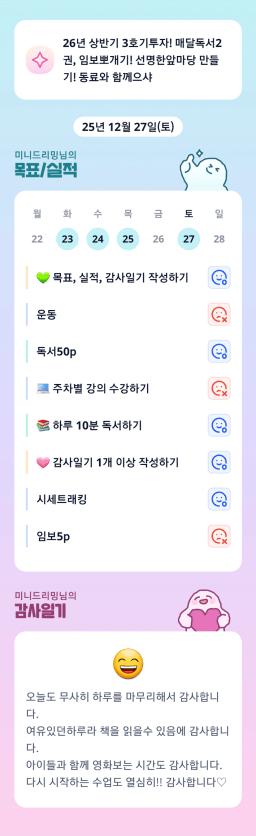 [에이스1반/독서TF2조 아오마메] 12/25,26 목실감