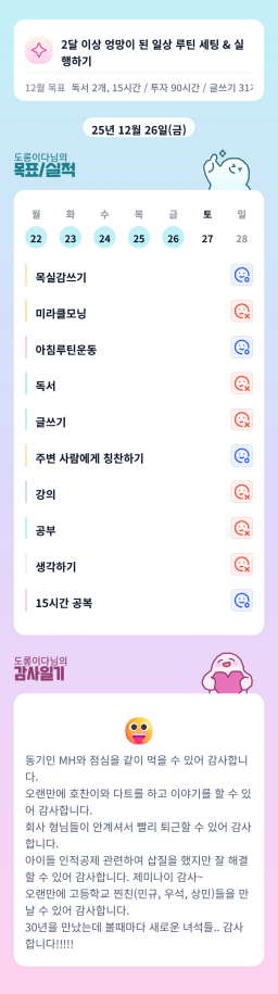 [또지또규] 12월19일 목실감(715일차) - 12월24일 목실감(720일차)