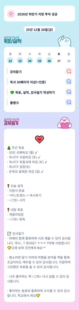 [독서 TF 독서에 ㅇ1렇게 진심을 담아서 한다랭 스뎅] 25.12.26 목실감
