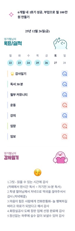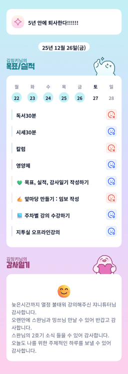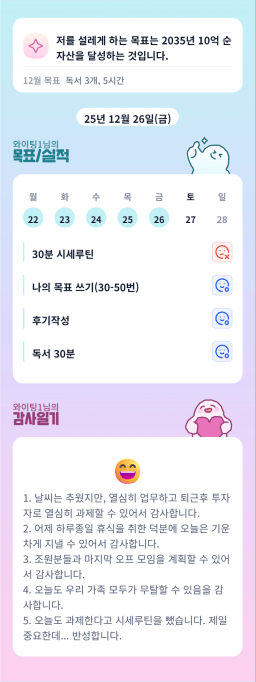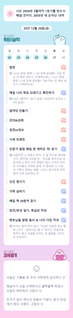 [열기89기 비전보드 속 드림하우스로 24갈조♡ 재테크햄찌] 매일목실감 12.26.