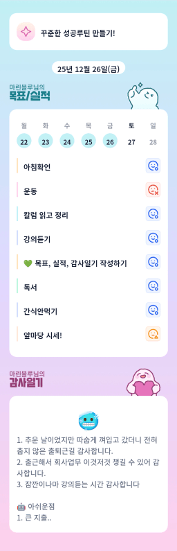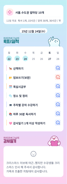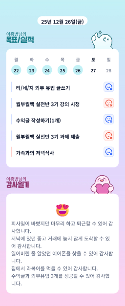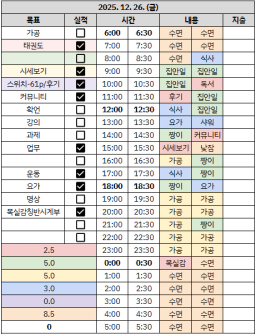[짱이사랑맘] 12/26 목실감칭반시계부