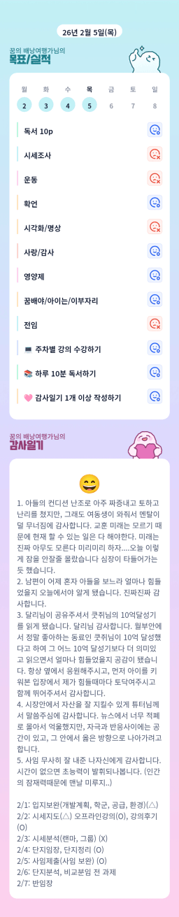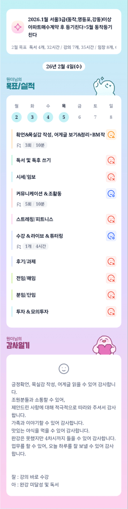 [운조 버스 타고 오랜 투자로 2어질조 학생] 2026년 2월 5일 목실감🌸
