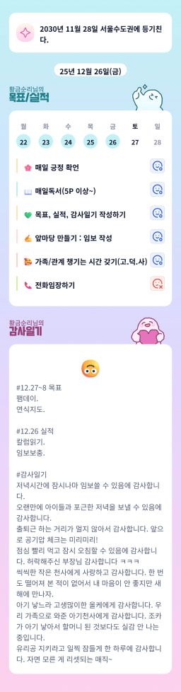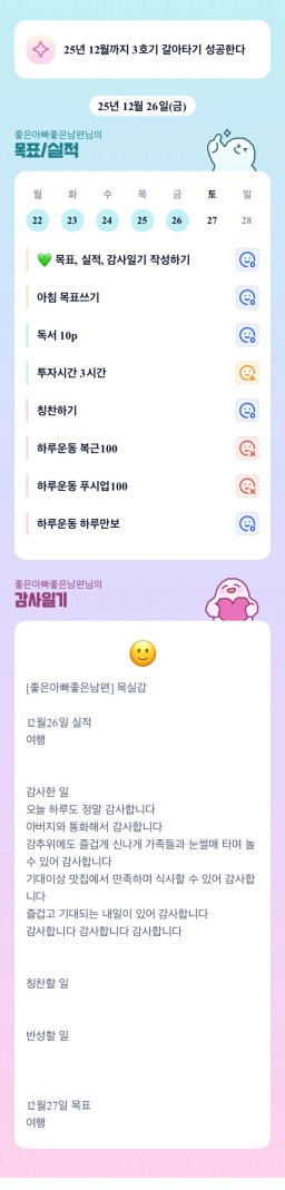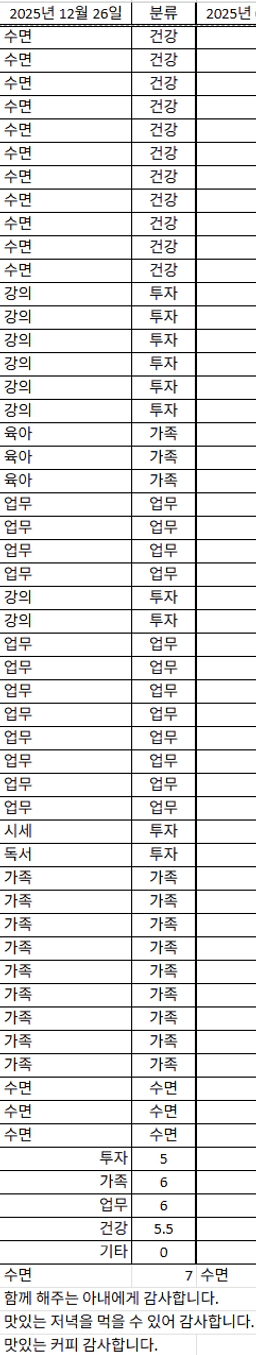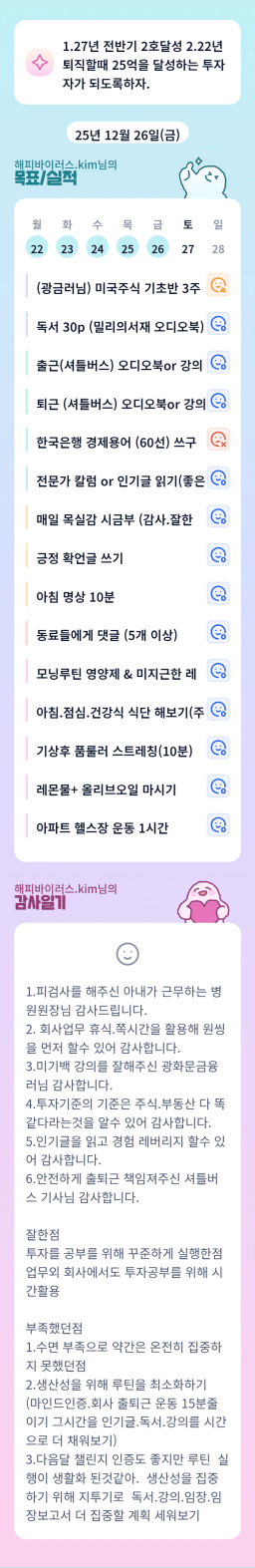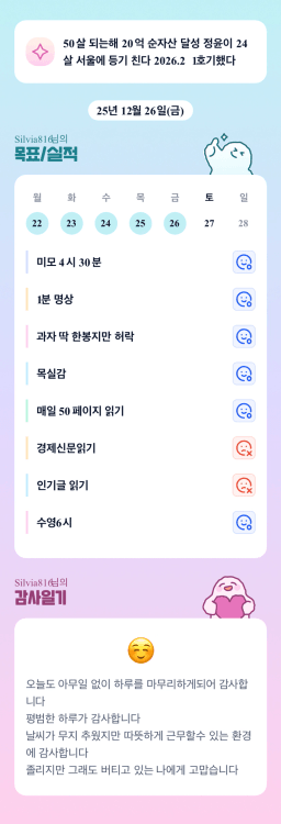 25년 12/27 목표,실적,감사일기,시간가계부[헤라클래스]
