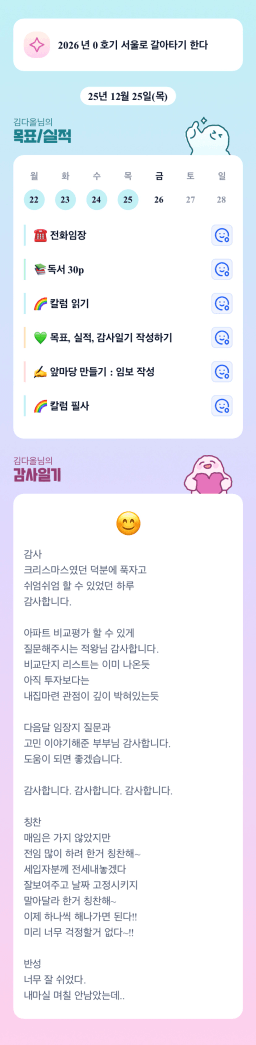 [내마실 엔젤빈쓰 튜터님과 함께하니 4주? 아니조~ 3주만에 내집마련 성공했조 김다올] 25.12.25.(목) 목실감