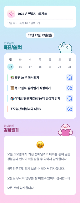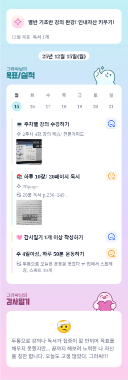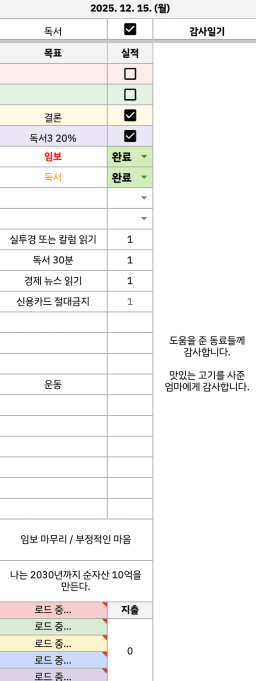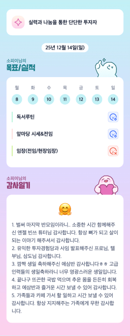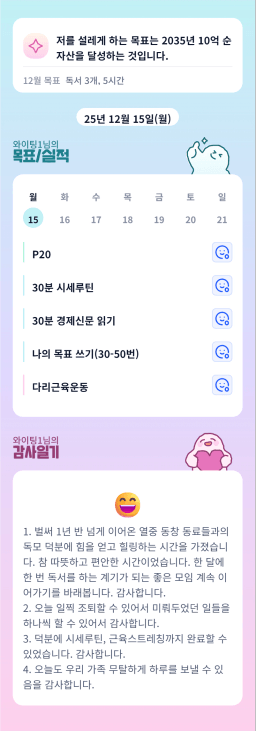 [열기89기 투자원칙대로 chilly(72)하게 안정적으로 투자하조_만보] 25.12.15 목실감