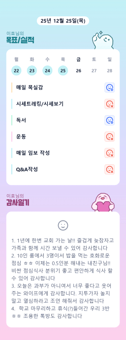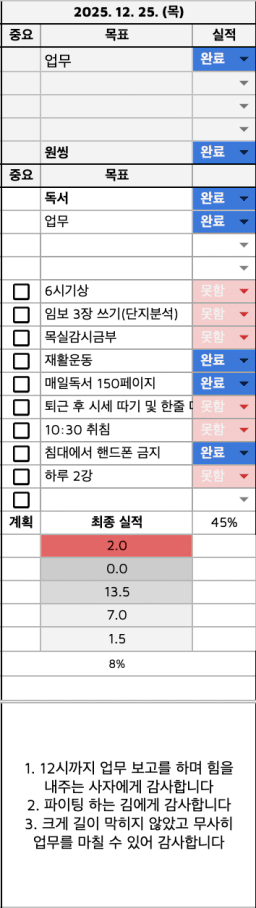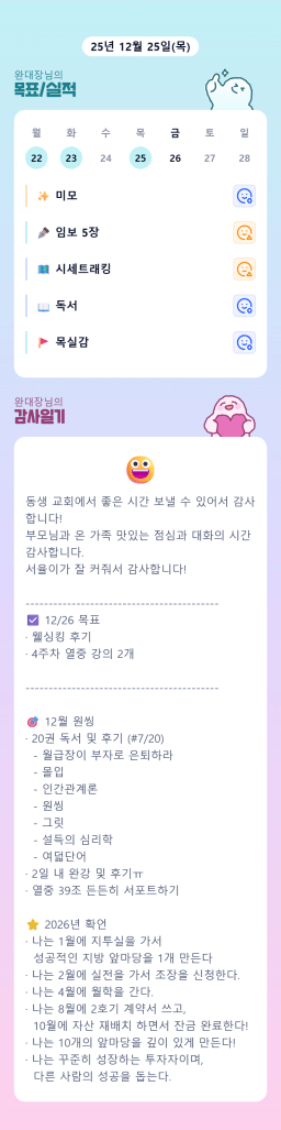 2025.12.25~26. 목표실적 #358~359 [너라는 위대함을 믿어 🩷 큄주술]