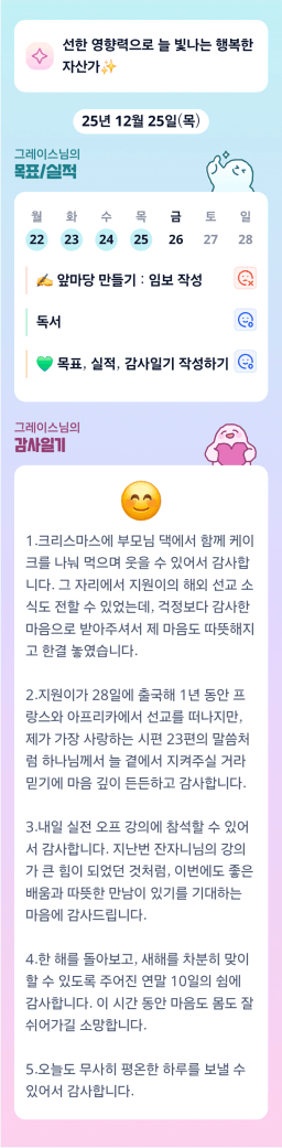 2025.12.25~26. 감사일기 #358~359 [너라는 위대함을 믿어 🩷 큄주술]