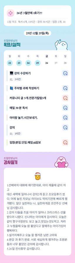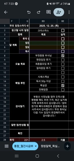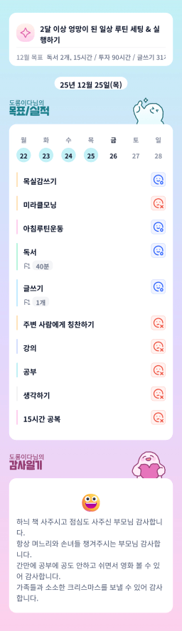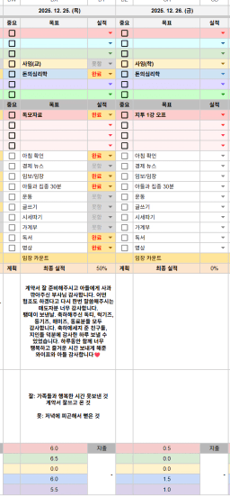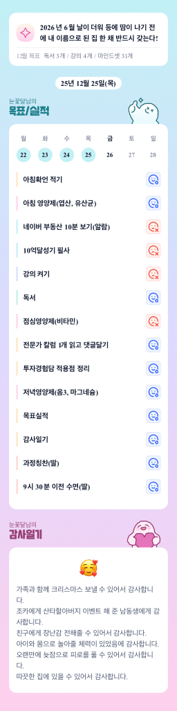 [별찌롱] 12/25 실적, 감사일기, 시간가계부 12/26 목표