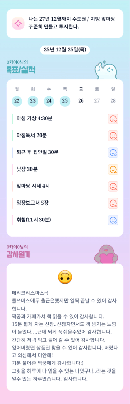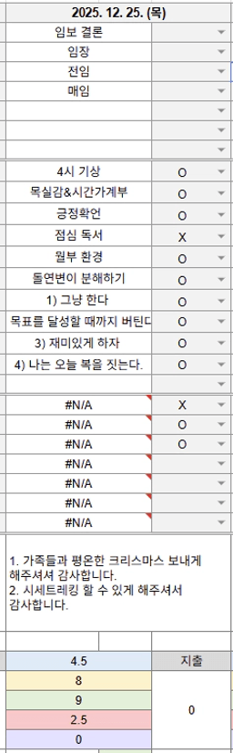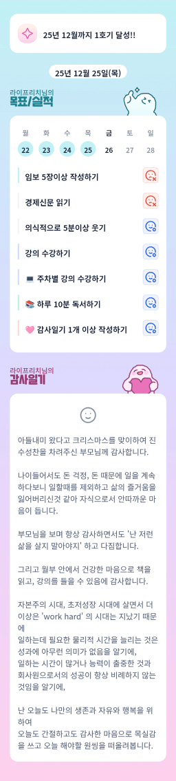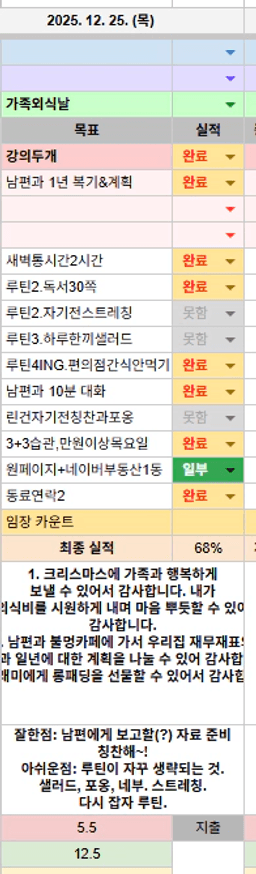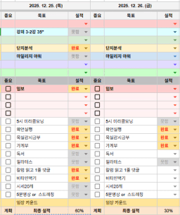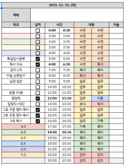 25년 목표,실적,감사일기,시간가계부[헤라클래스]