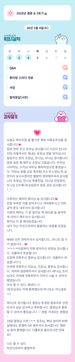 [실전34기 1타 쌤 배배튜터님과 5늘도 성장한 배생이들 바결] 2/4 목실감
