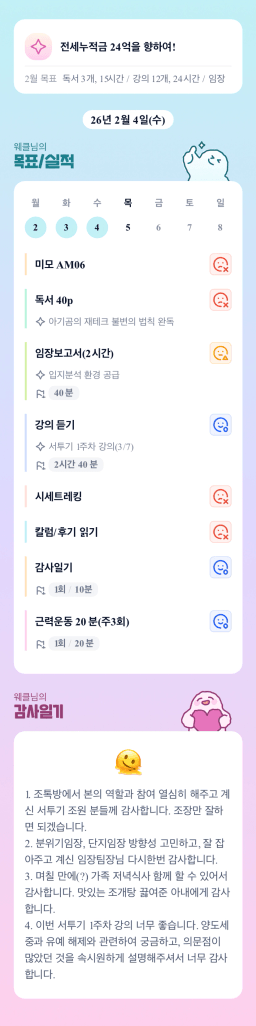 [서투기30기 토허제 풀리면 9로9로 달려가조 웨클] 매일 목실감 26/2/4