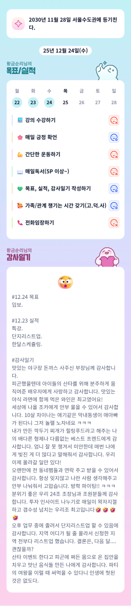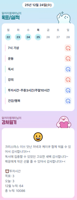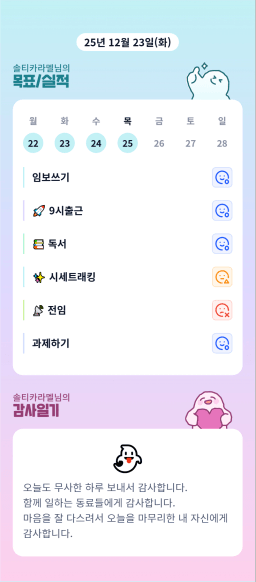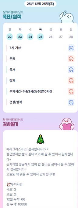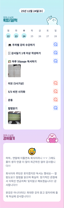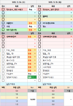 [정의] 2025년 12월 25일 목표, 실적, 감사일기