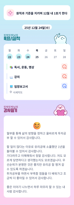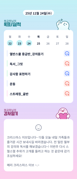 [정의] 2025년 12월 25일 목표, 실적, 감사일기