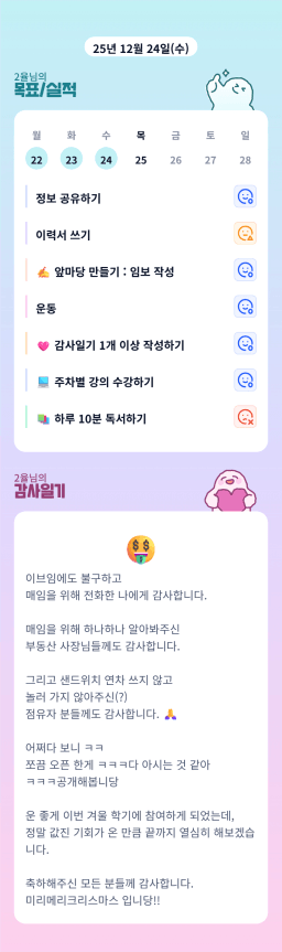 [실전33기 이브잉튜터님과 2븐하게 앞마당 구워보조 또박또박] 목실감 25.12.17. - 12.24.