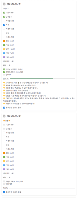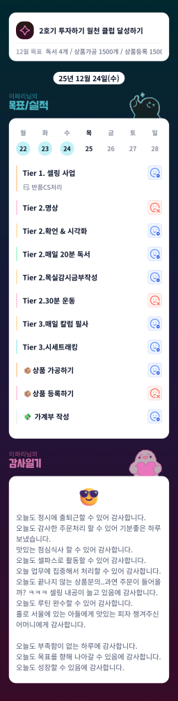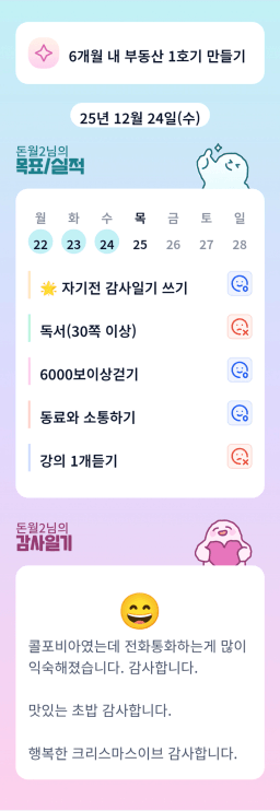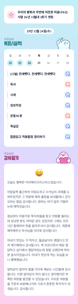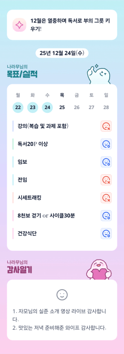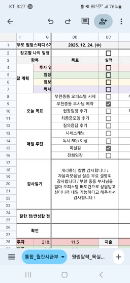 [별찌롱] 12/24 실적, 감사일기, 시간가계부 12/25 목표