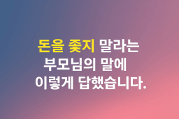 돈을 좇지 말라는 부모님의 말에 이렇게 답했습니다. [타에탄]