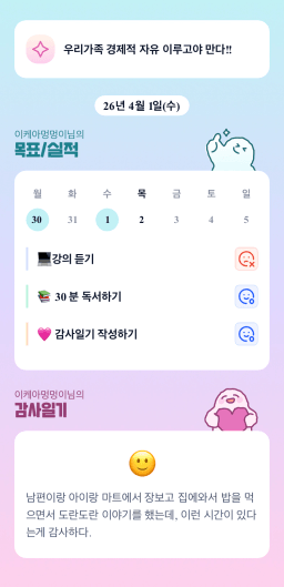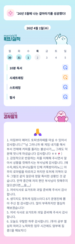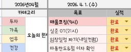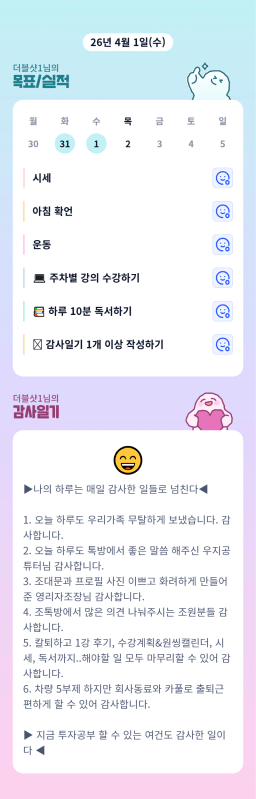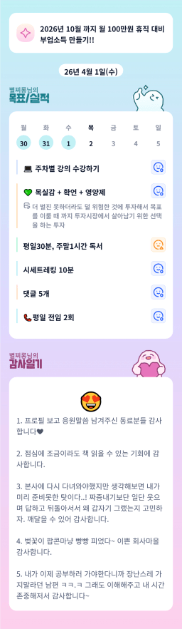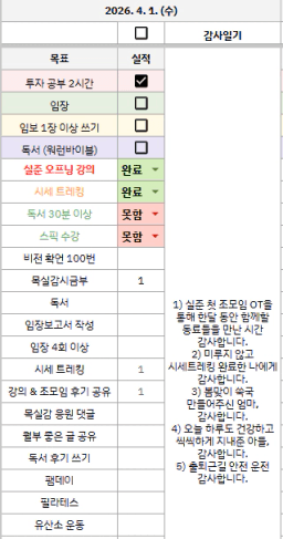 [별찌롱] 4/1 실적, 감사일기, 시간가계부 4/2 목표