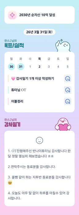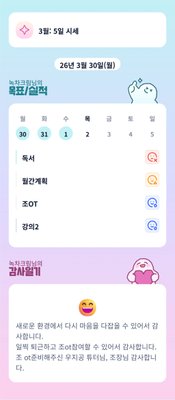 [눈덩이쥬] 3/31(화) 목실감 누적 180일, 연속 1일 진행중