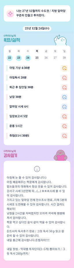 [열중 48기 아파트 4고8아 강남에 24오조 꾸준히해보자] 251224 목실감시금부