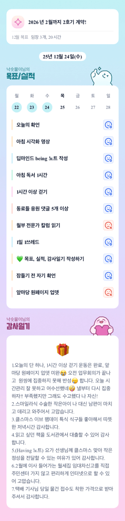 [열중 48기 2번달 독서ㄹ6 하나되 조_별을향해쏴라]#12/24 매일목실감