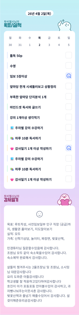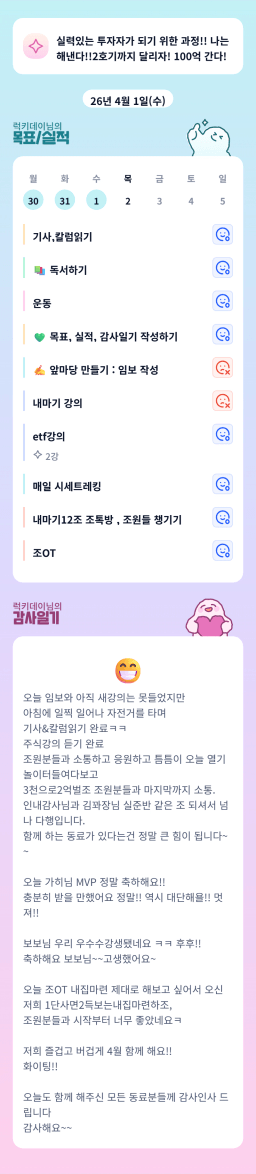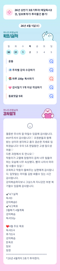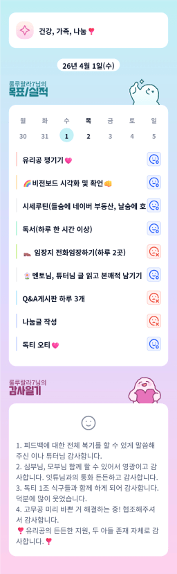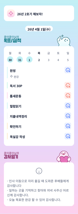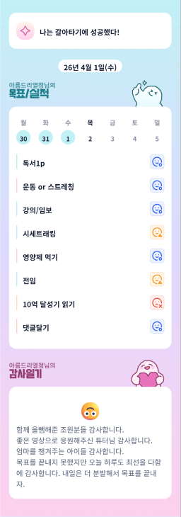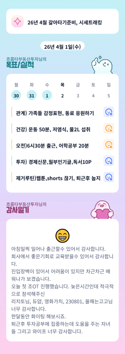 [콩이콩이] 목실감 누적 239일, 연속 239일 진행중(260401)