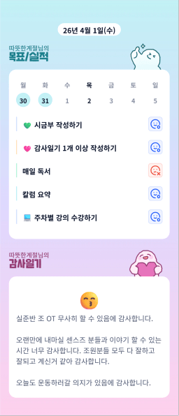 [따뜻한계절] 목실감 누적 167일, 연속 158일 진행중