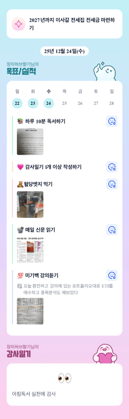 [열기89기 비전보드 속 드림하우스로 24갈조♡ 재테크햄찌] 매일목실감 12.21~24.