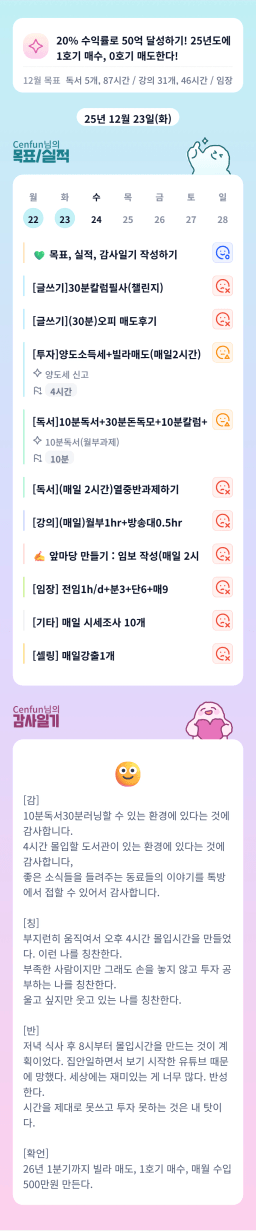 12/23 목표, 실적, 감사일기 [주시부]