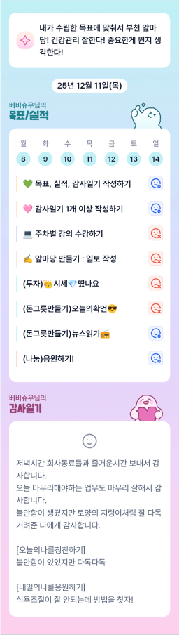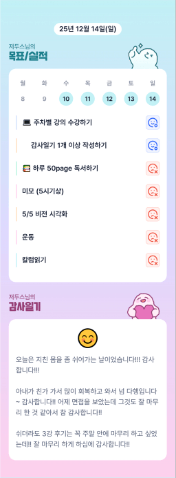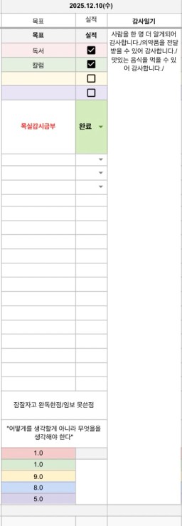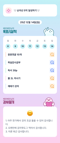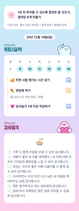 [러버블리v] 25.12.15 목표, 12.14 감사일기 + 칭반