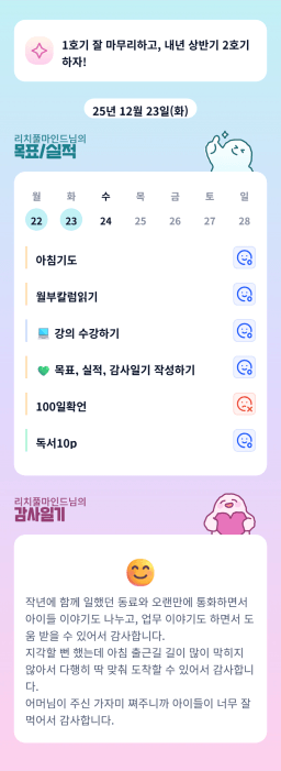 [하나 둘 셋 아주아] 25.12.23 화 목실감