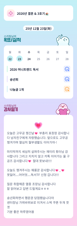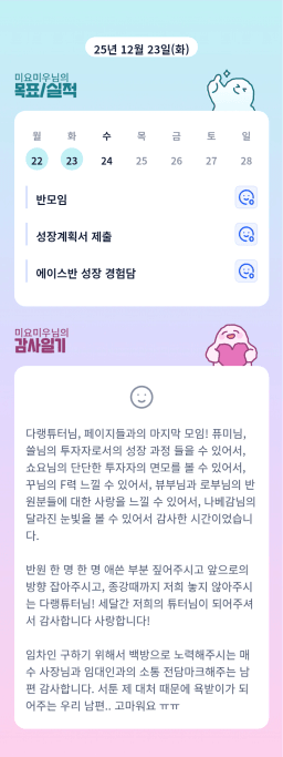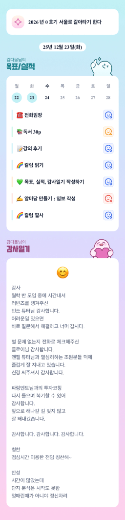 [내마실 엔젤빈쓰 튜터님과 함께하니 4주? 아니조~ 3주만에 내집마련 성공했조 김다올] 25.12.23.(화) 목실감