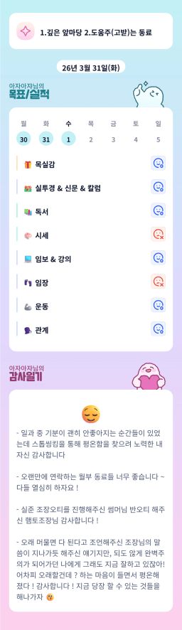[아자아쟈] 3.31 ~ 4.1 목실감