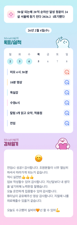 [실전34기 1타 쌤 배배튜터님과 5늘도 성장한 배생이들 쪼코파이a]26.2.4