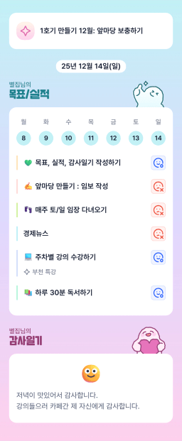 [열기89기 not 조급, but chill(7) 아파트 4모으조 먹부기] 20251214 목실감시금부