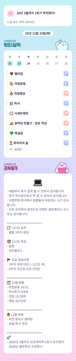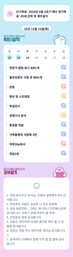 [열중 48기 아파트 4고8아 강남에 24오조 꾸준히해보자] 251223 목실감시금부