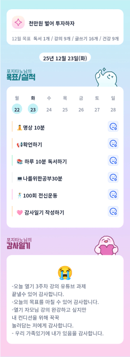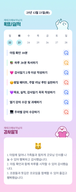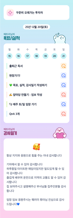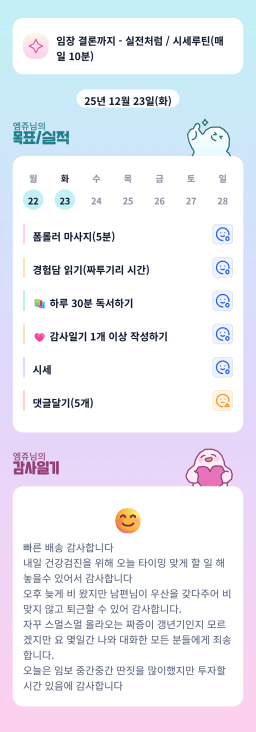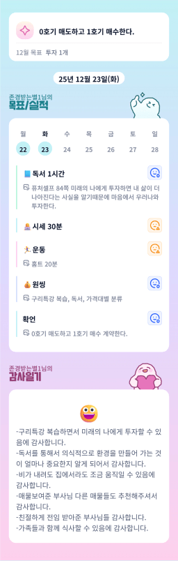 [열기89기 투자원칙대로 chilly(72)하게 안정적으로 투자하조_만보] 25.12.23 목실감