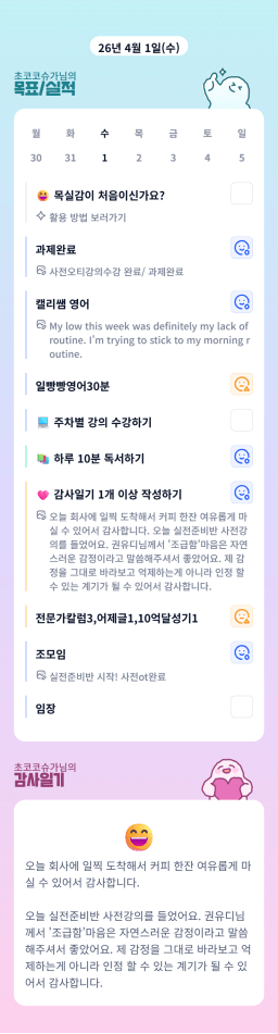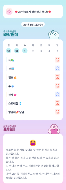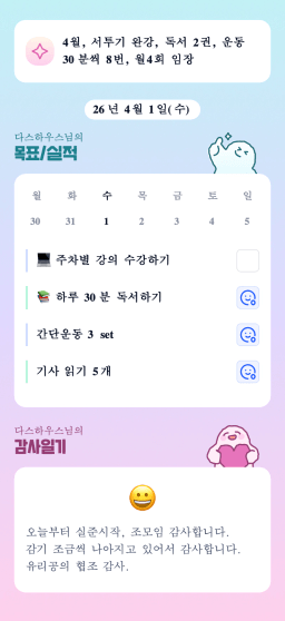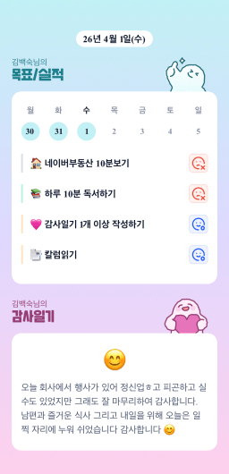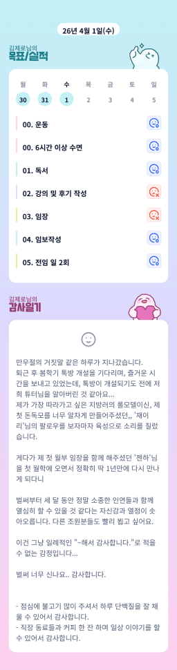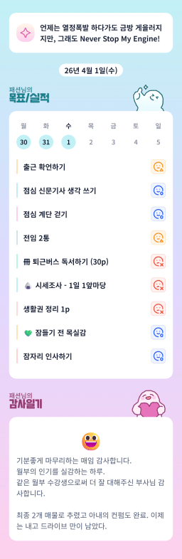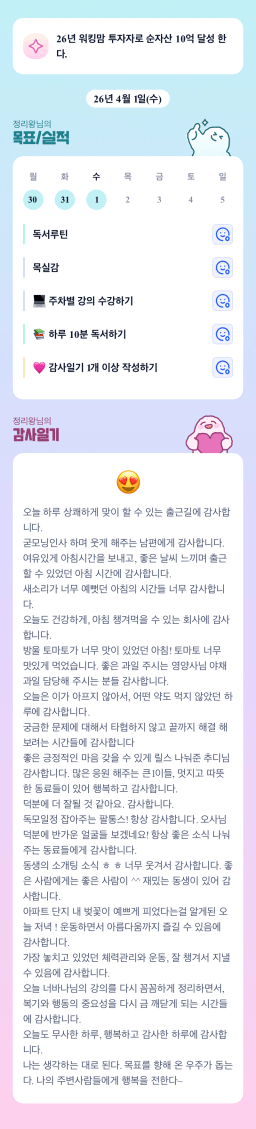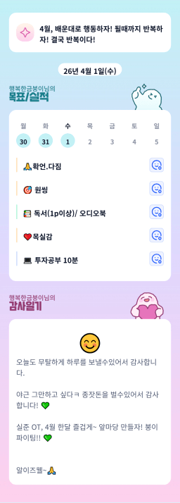 [행복한금붕이] 매일목실감 (20260401) D+342