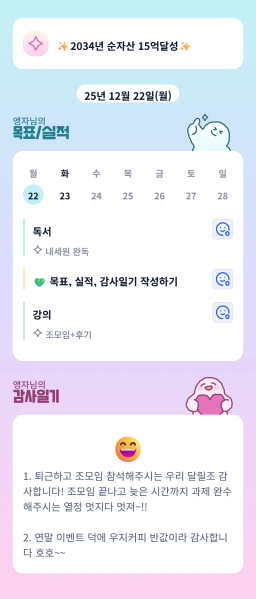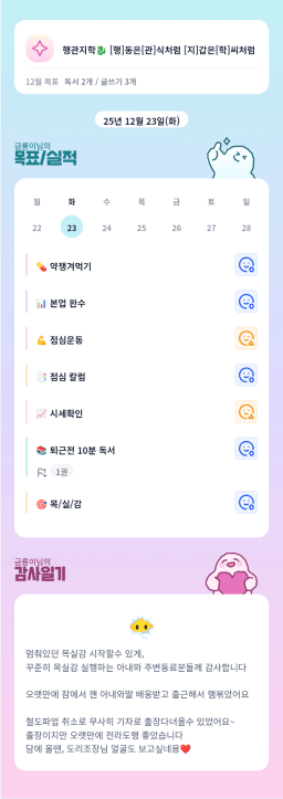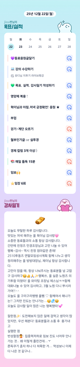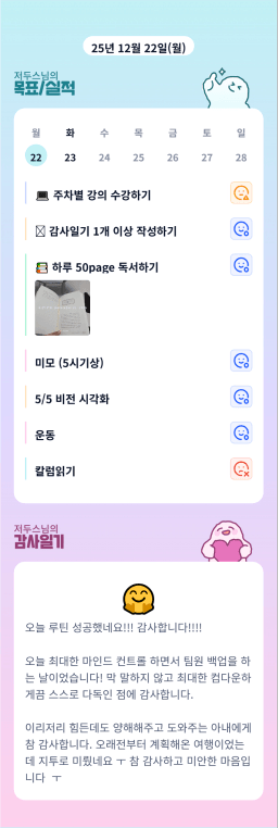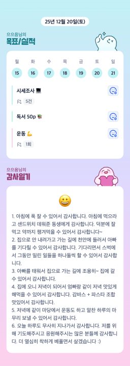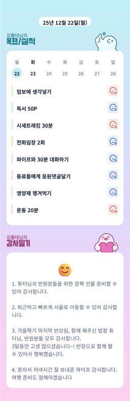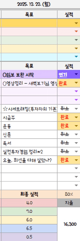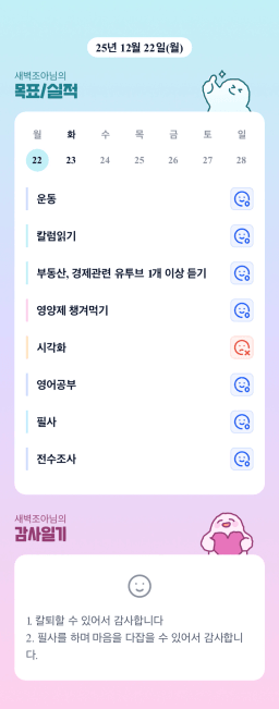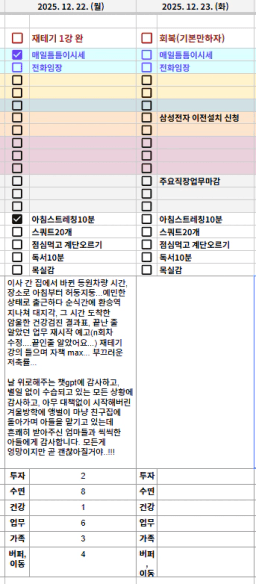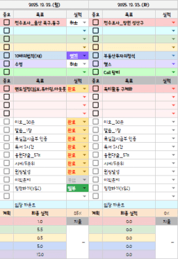 25년 12/19~12/23 목표,실적,감사일기,시간가계부[헤라클래스]