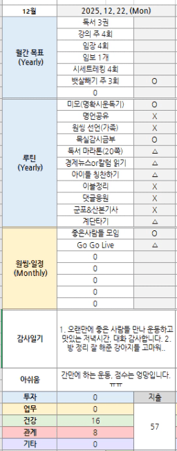 [나무해 월벗] #1332. 25.12.22 목표/실적