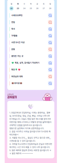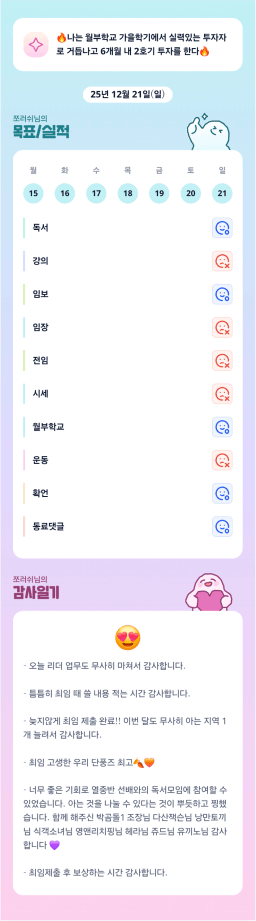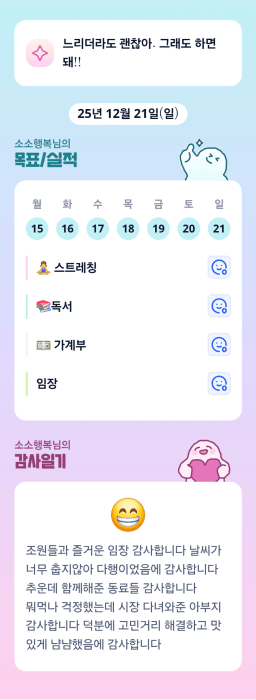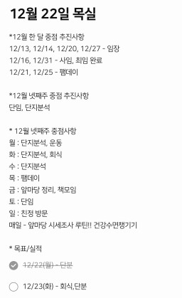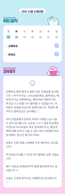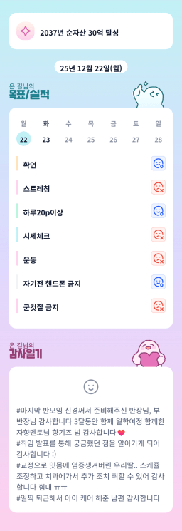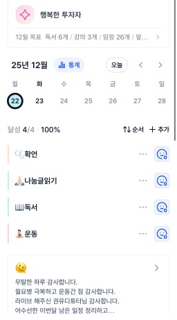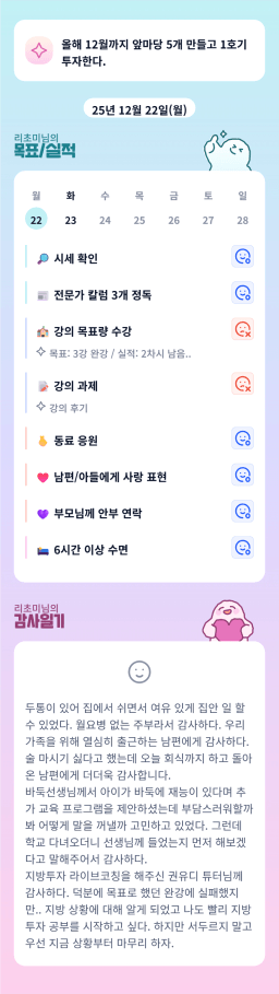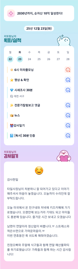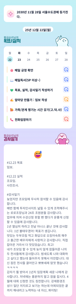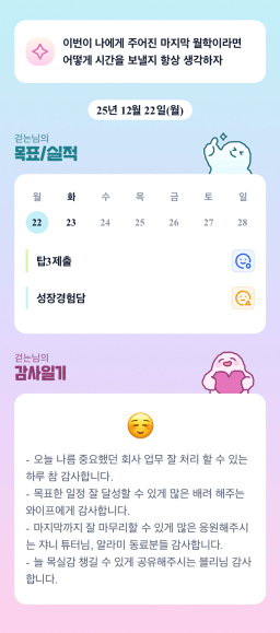 [러버블리v] 25.12.23 목표, 12.22 감사일기 + 칭반