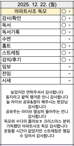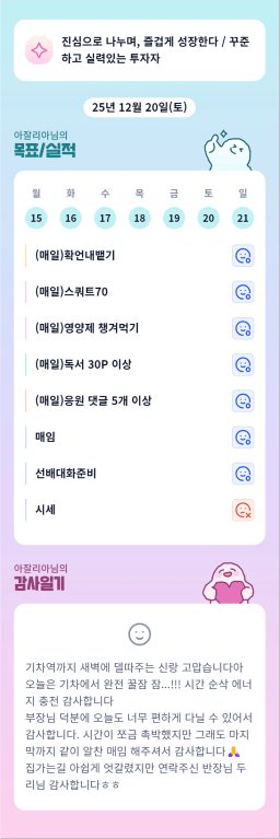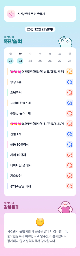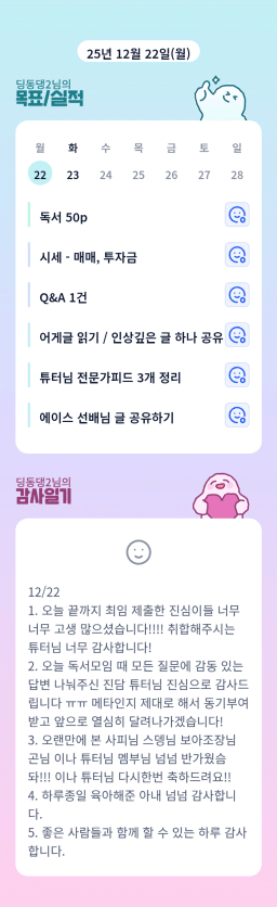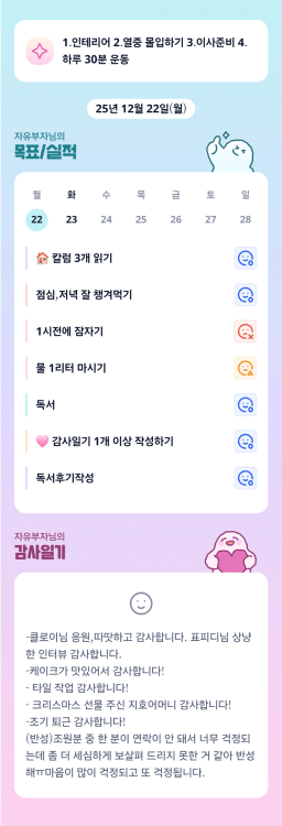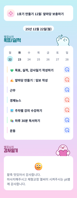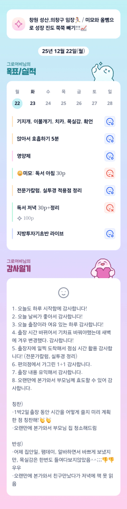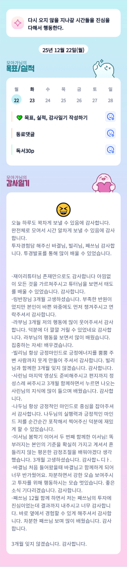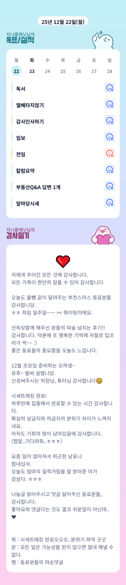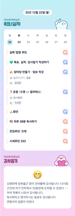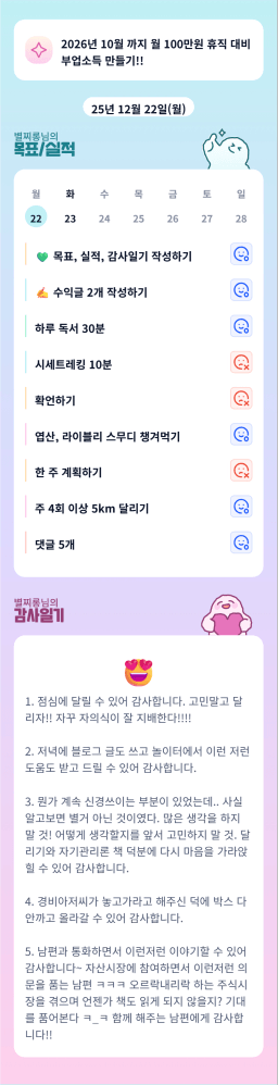[별찌롱] 12/22 실적, 감사일기, 시간가계부 12/23 목표