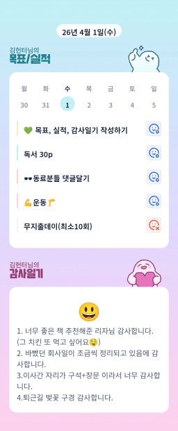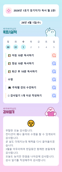 [행복한금붕이] 매일목실감 (20260401) D+342