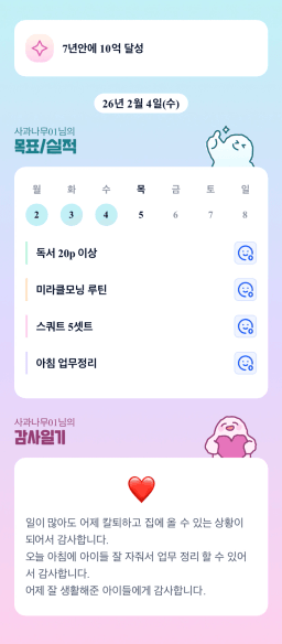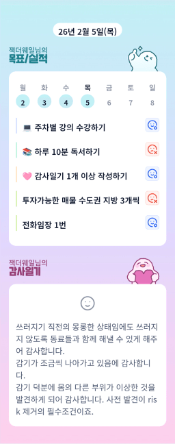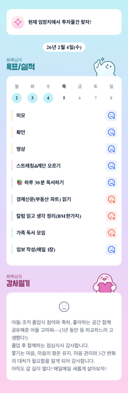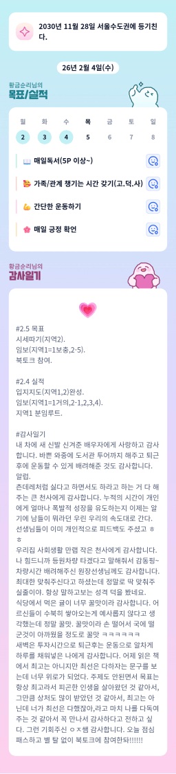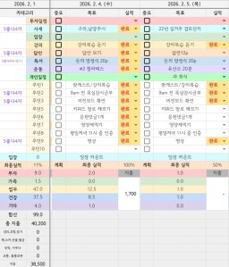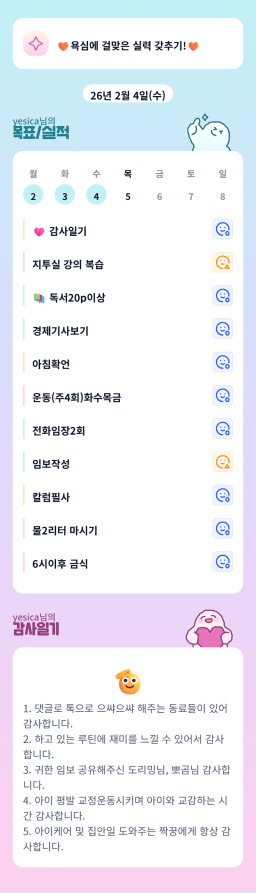26년 2/5 목표,실적,감사일기,시간가계부[헤라클래스]